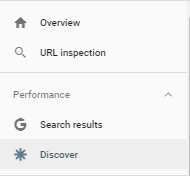 Google Discover is a relatively new Google content discovery tool that pushes content to you based on your interests. You can see your Google Discover performance in Google Search Console. Start by clicking on the Discover navigation link in the left-hand menu:
