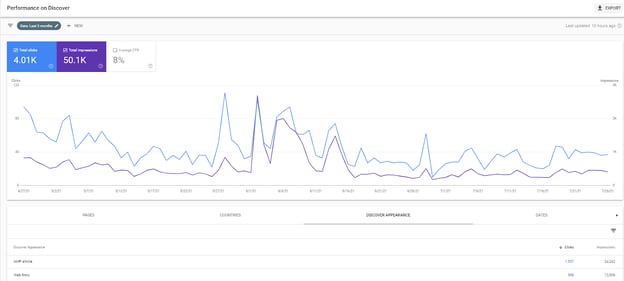 You will then be able to see what your performance looks like. Google Discover is increasingly becoming an important channel to pay attention to for your overall digital marketing strategy: